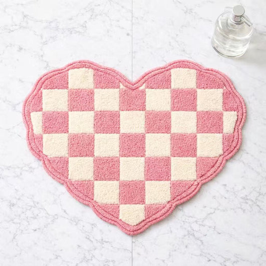 JoySwallow Boho Checkerboard Heart Rug Wavy Love Shape tufted Bathmat, Bedroom Floor Mat