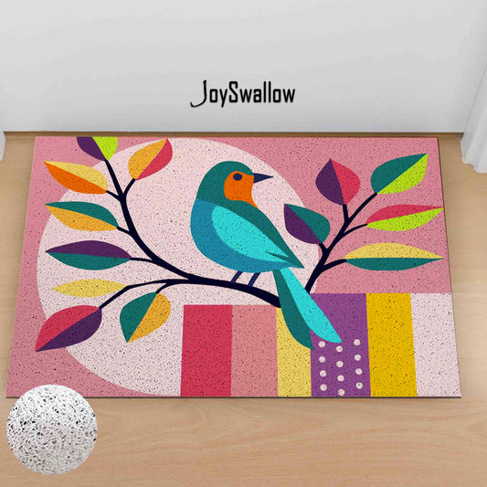 JoySwallow Bird Leaves Sun Doormat, PVC Coil Entrance Door Mat, Cute Bird Anti-Skid Outdoor Mat, Modern Entrance Rug, Floral Entryway Rug for Porch Courtyard
