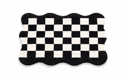 Joyswallow Modern Black and White Checkered Velvety Bath Mat - Soft and Plush Non-Slip Tufted Bathroom Rug