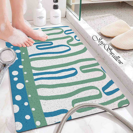 JoySwallow Personalized Bathtub Mat, Fish and Wave Bathtub Mat, Geometric Art PVC Coil Shower Mat, Anti Skid PVC Coil Bathmat, Fish Permeable Bathmat, Leaves Drainable Rug