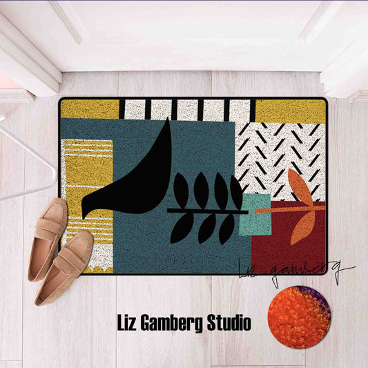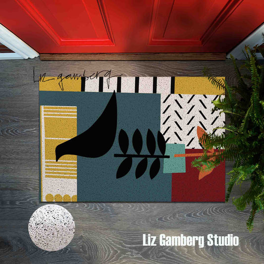 Bird On Vine Flannel Door Mat by Liz Gamberg Studio from US