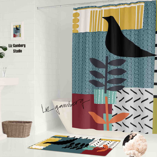Bird On Vine Shower Curtain by Liz Gamberg Studio from US