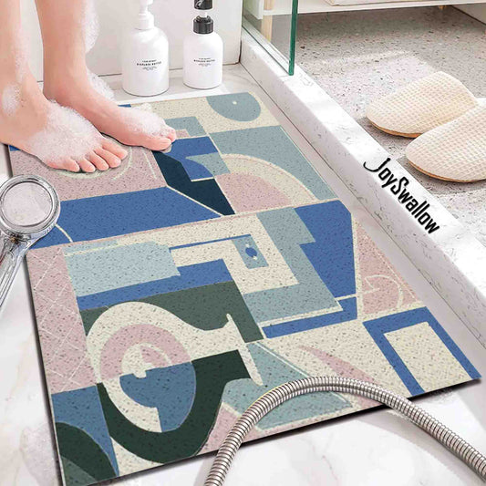 JoySwallow Personalized Bathtub Mat, Geometric Architectural Art Bathtub Mat, Color Blocks PVC Coil Shower Mat, Anti Skid PVC Coil Bathmat, Geometric Permeable Bathmat, Drainable Rug