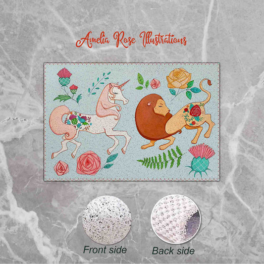 The Lion and the Unicorn Flannel Door Mat by AmeliaRose Illustrations from UK