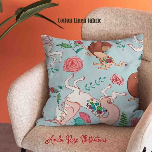 The Lion and the Unicorn Velvet | Linen Cotton | Satin Throw Pillow Covers without Inserts by AmeliaRose Illustrations from UK