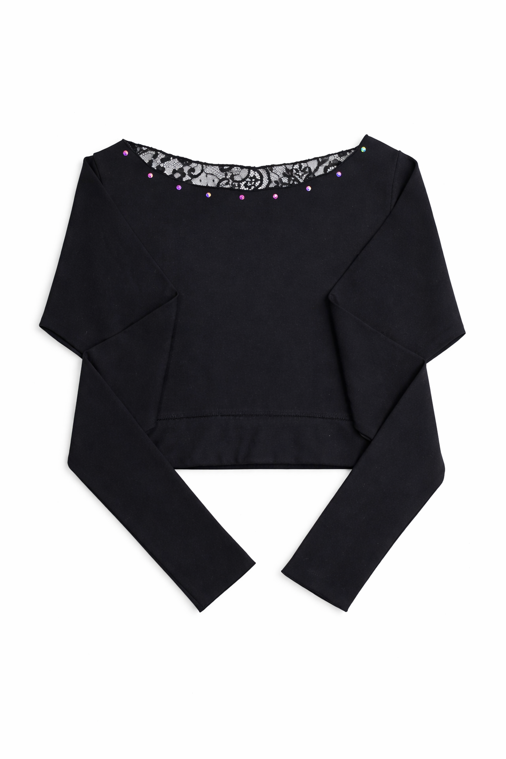 Kurzes Langarmtop mit Spitzendetail am Rücken.