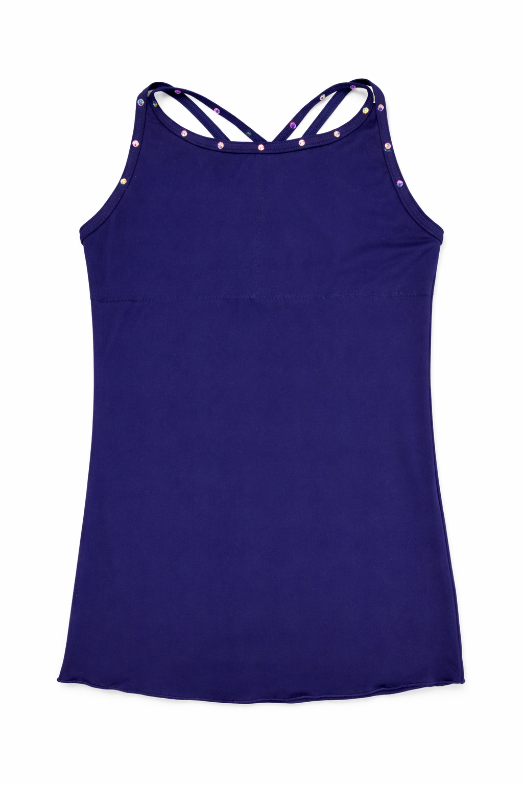 Ein komplett individuell gefertigtes 3-teiliges Trainingsset bestehend aus einem bauchfreien Top mit Spitzenrücken, einem Camisole und einer Hose – verziert mit personalisierten Kristallinitialen.