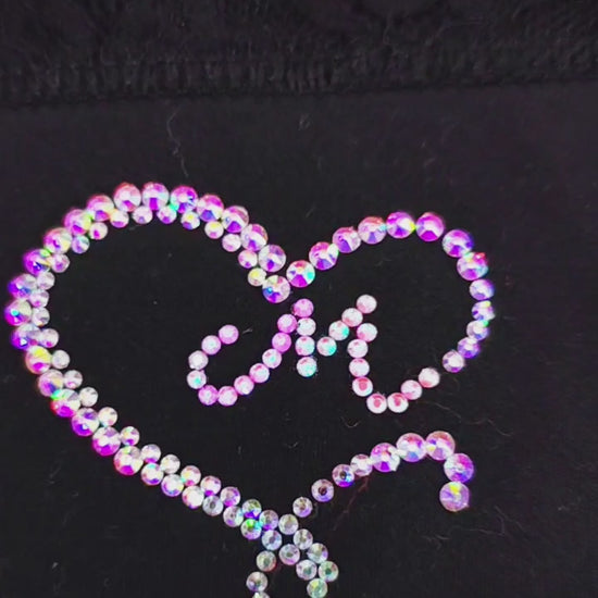 Personalisierte Kristallinitialen auf Oberteil und Hose