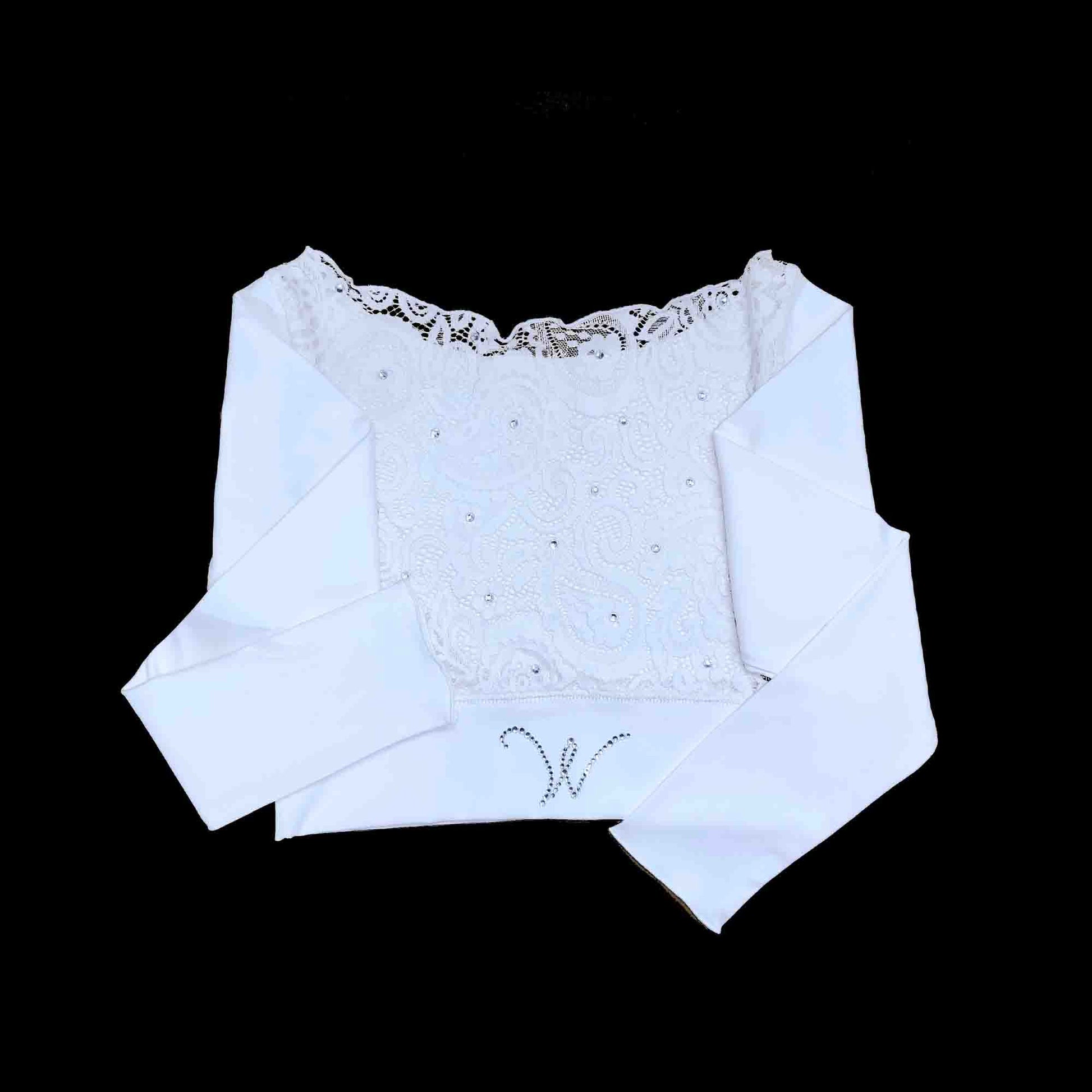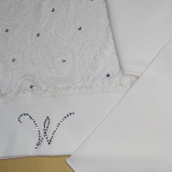 - Langärmliges Design mit elegantem Spitzenrücken und Strassverzierungen