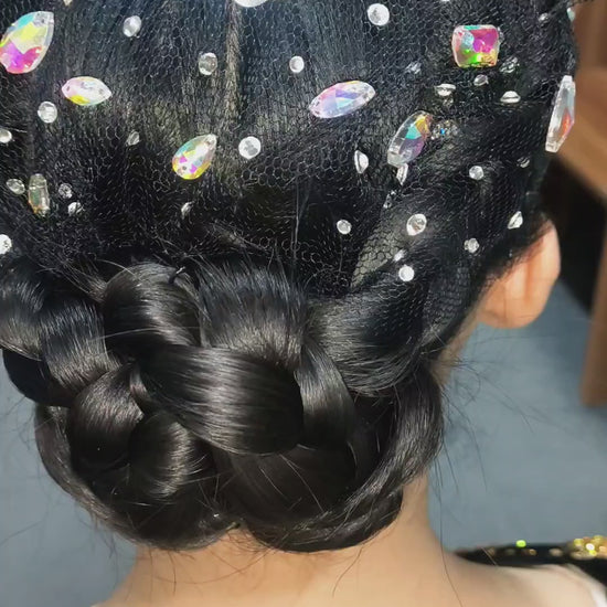 AB Crystal Rhinestone Hair Net for Figure Skating & Dance – Handmade Competition Accessory