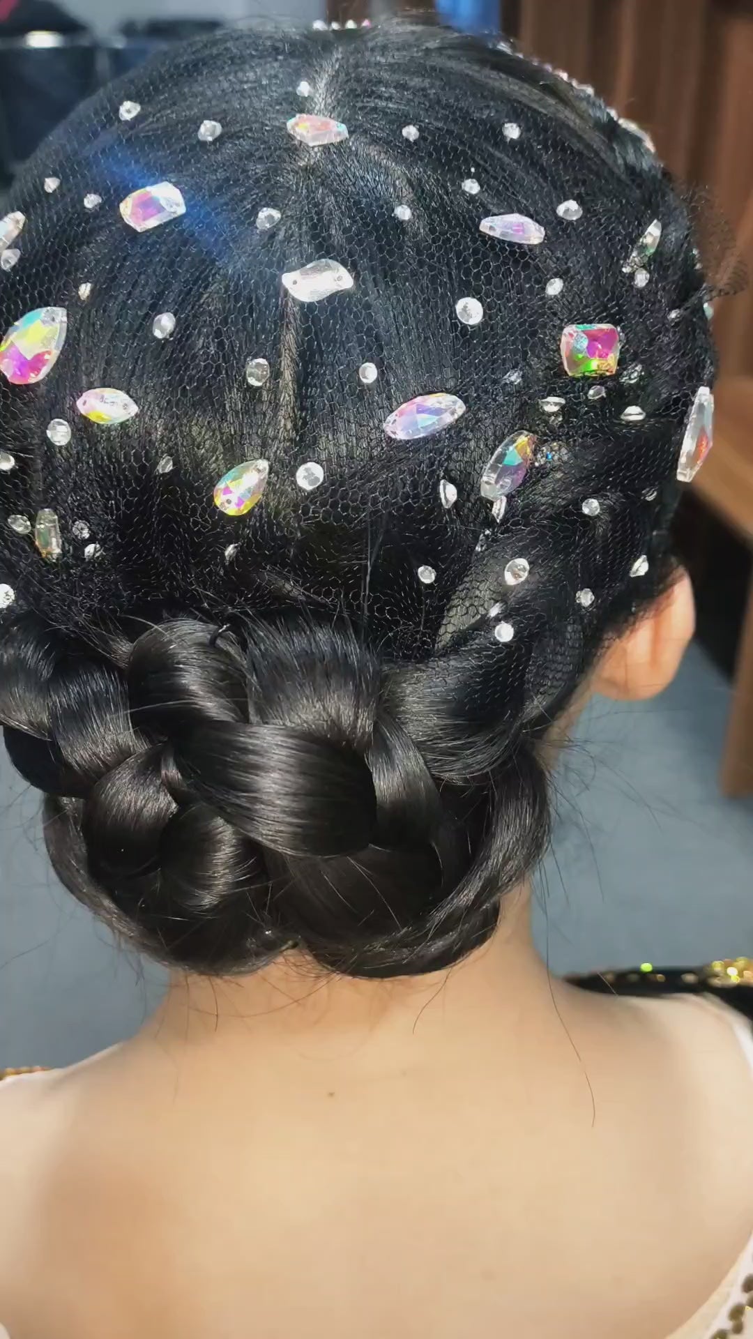 Designed to fit over a standard skating bun, it keeps hair neat while elevating the overall competition look. Suitable for figure skating, rhythmic gymnastics, ballet, and dance performances.