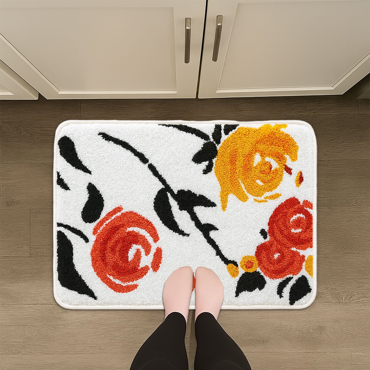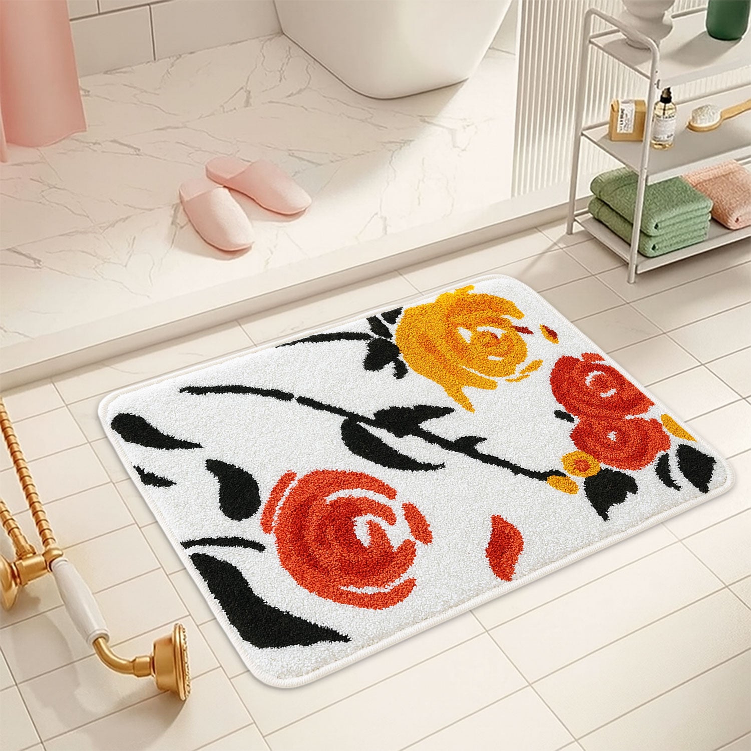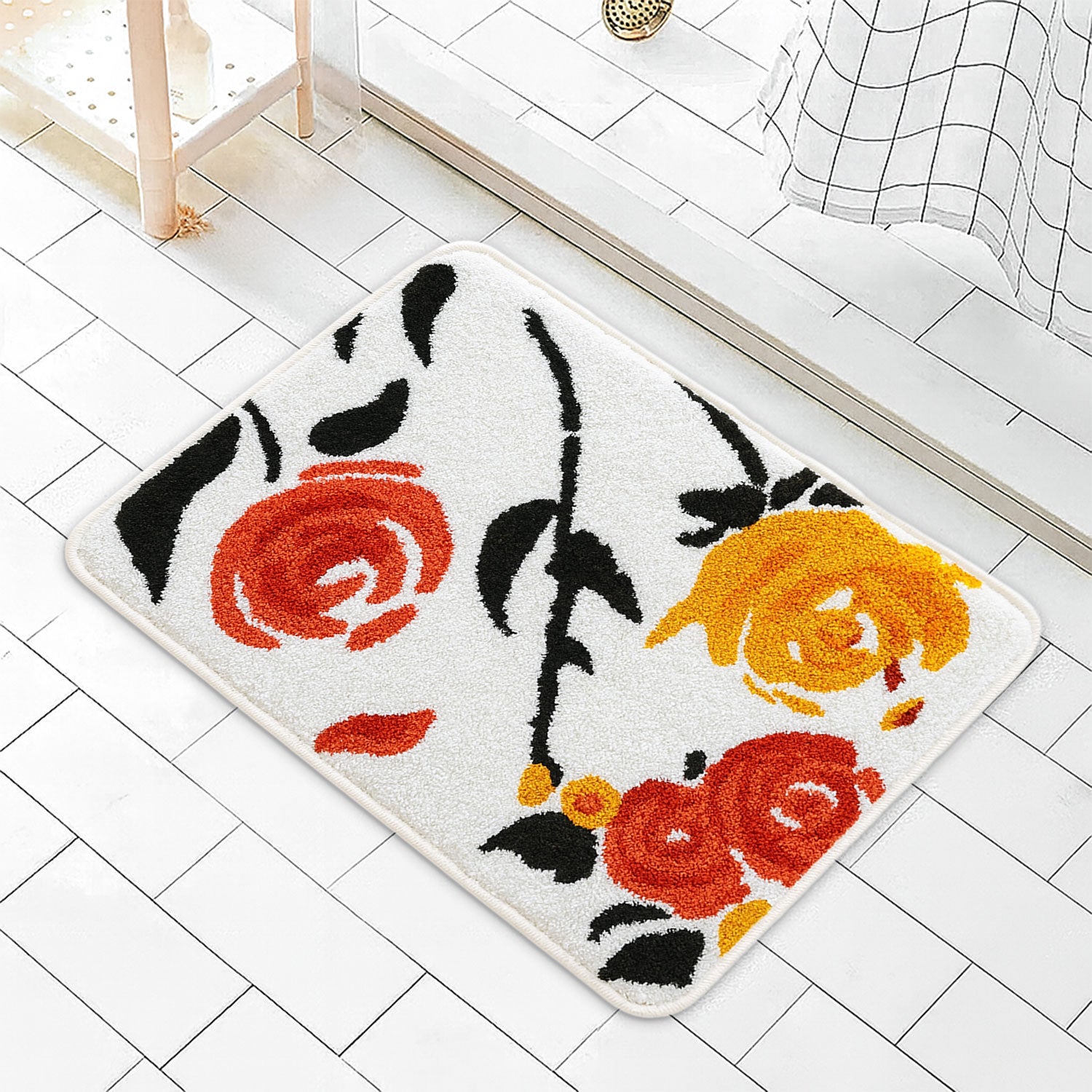 JoySwallow Orange Rose Tufted Bathmat, Floral Bathroom Rug, Flower Area Rug, Floral Bedroom Rugs
