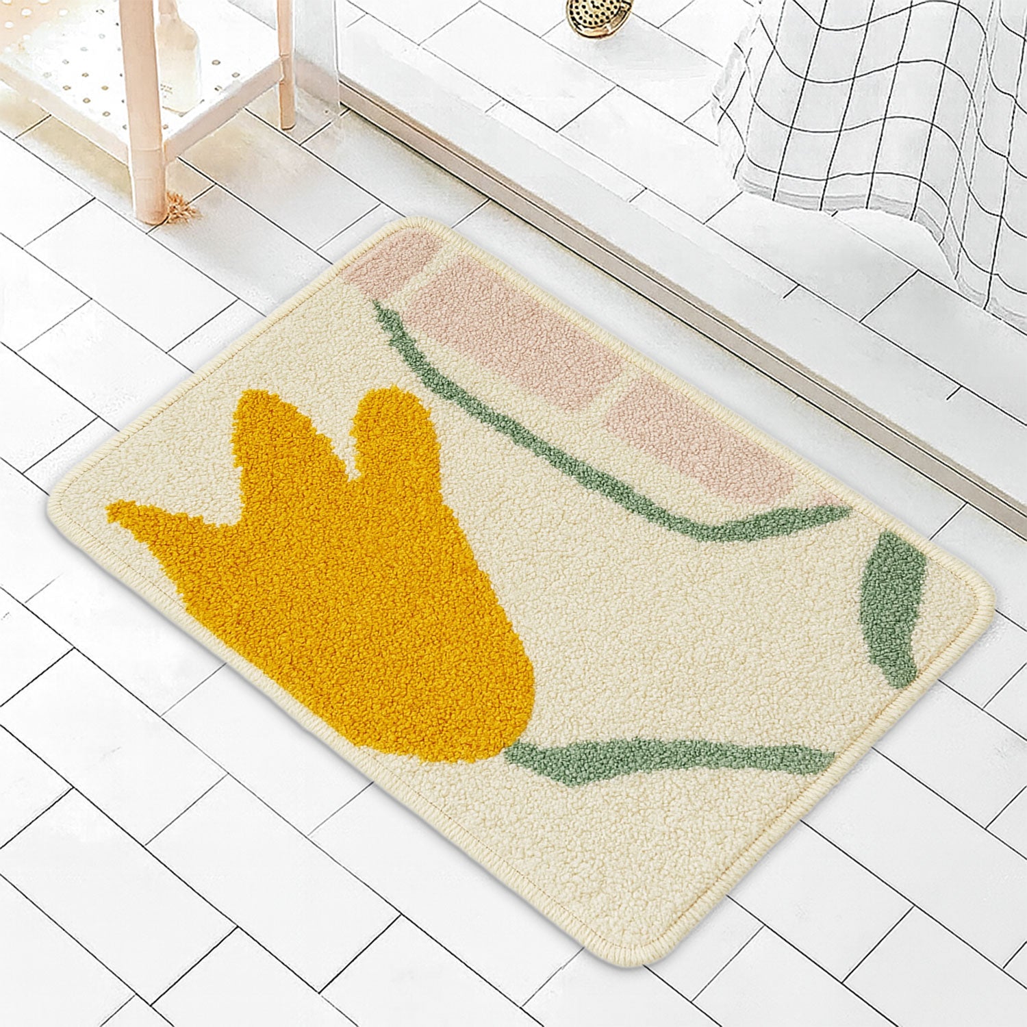 JoySwallow Buttercup Flowers Tufted Bathmat, Floral Bathroom Rug, Flower Area Rug, Floral Bedroom Rugs