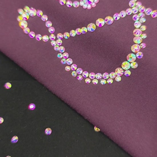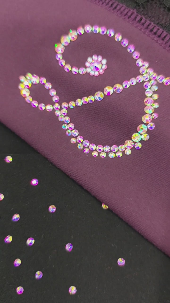 Custom Figure Skating Crop Tops – Plum Long Sleeve Black Lace Back with Rhinestones & Personalized Initials