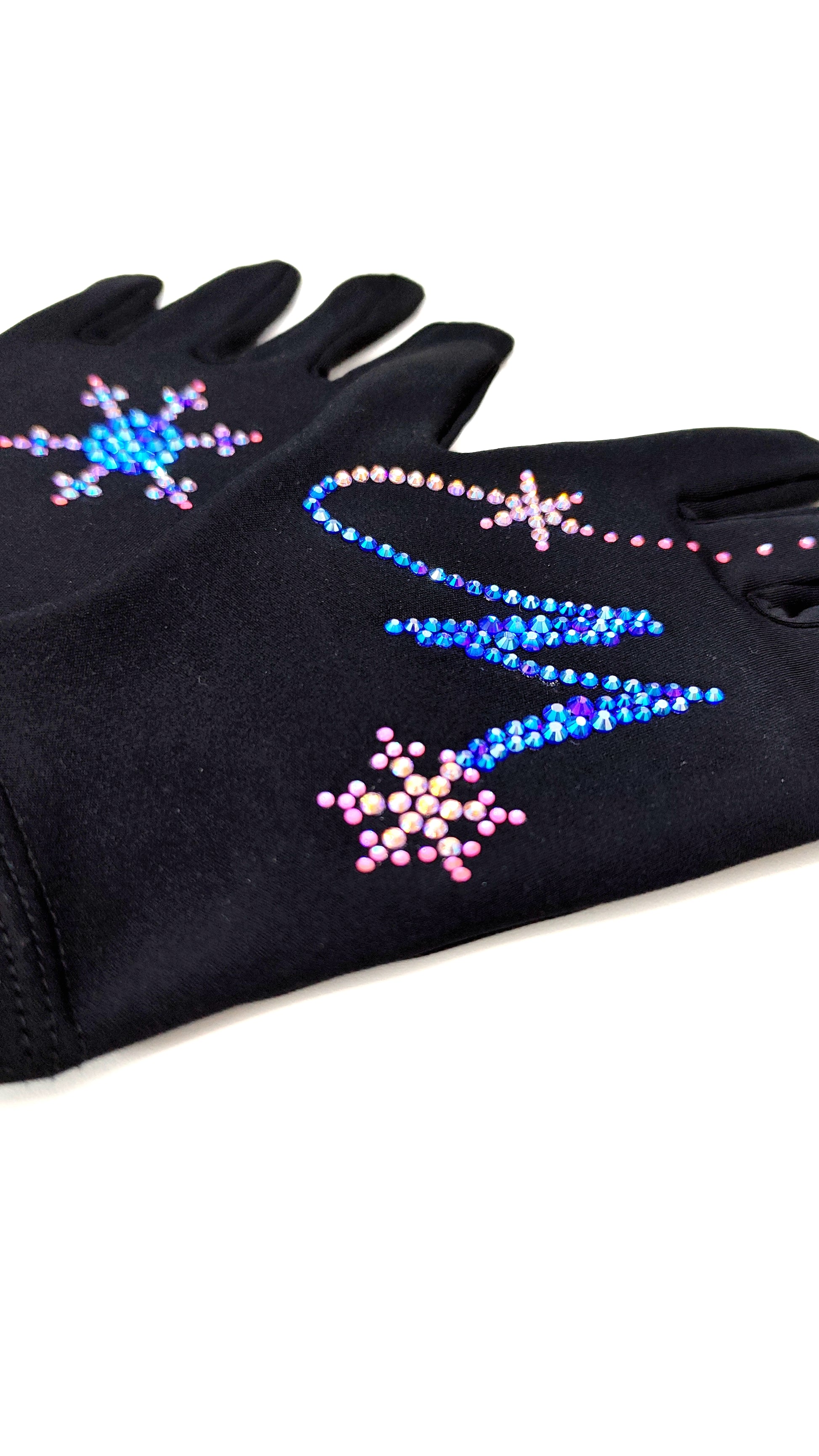 These handcrafted figure skating gloves are made from thick, brushed fleece fabric for excellent warmth and softness—perfect for chilly rinks and winter performances.