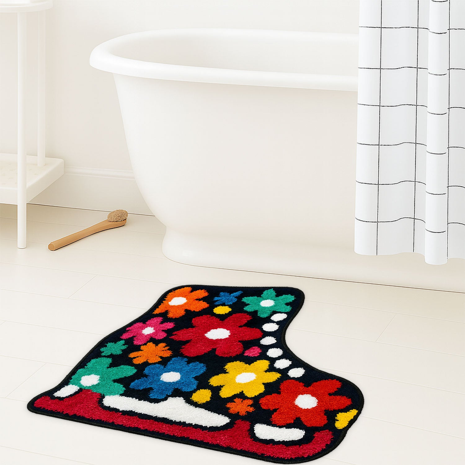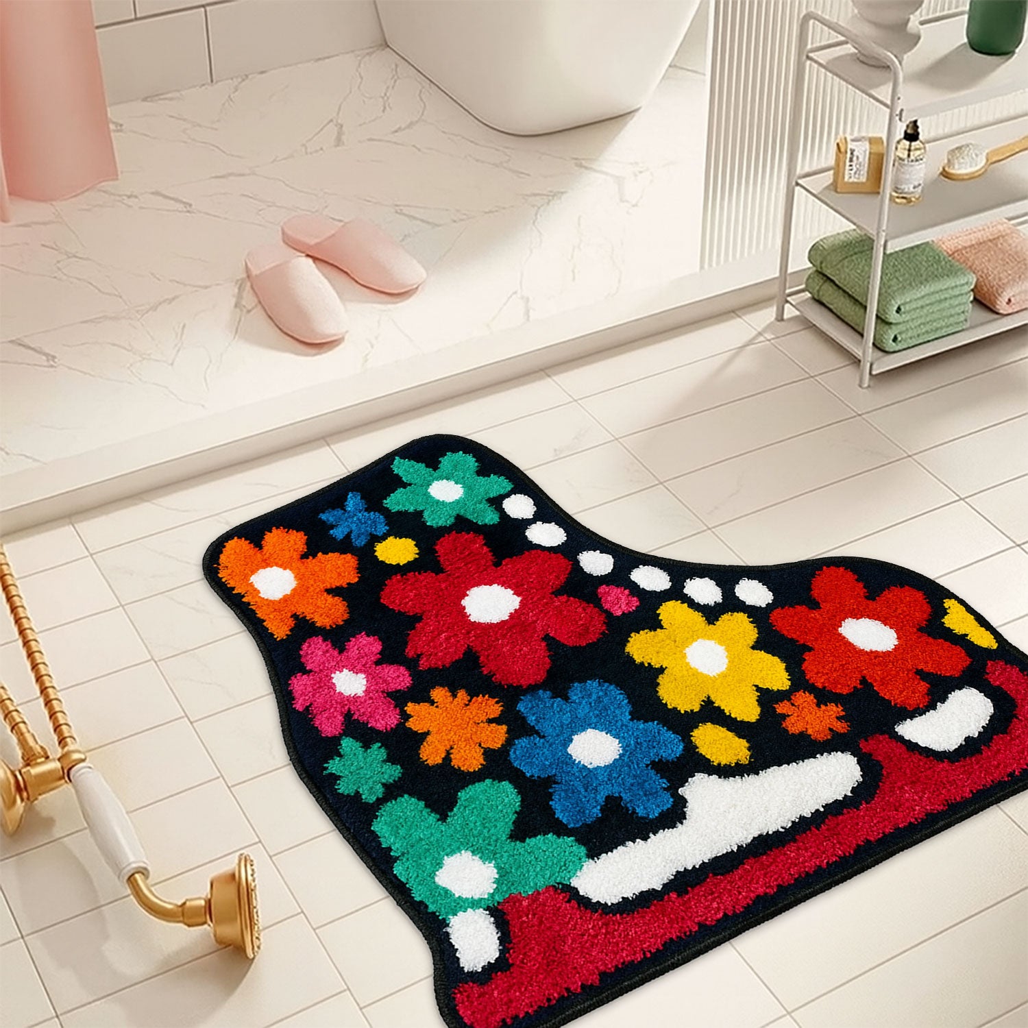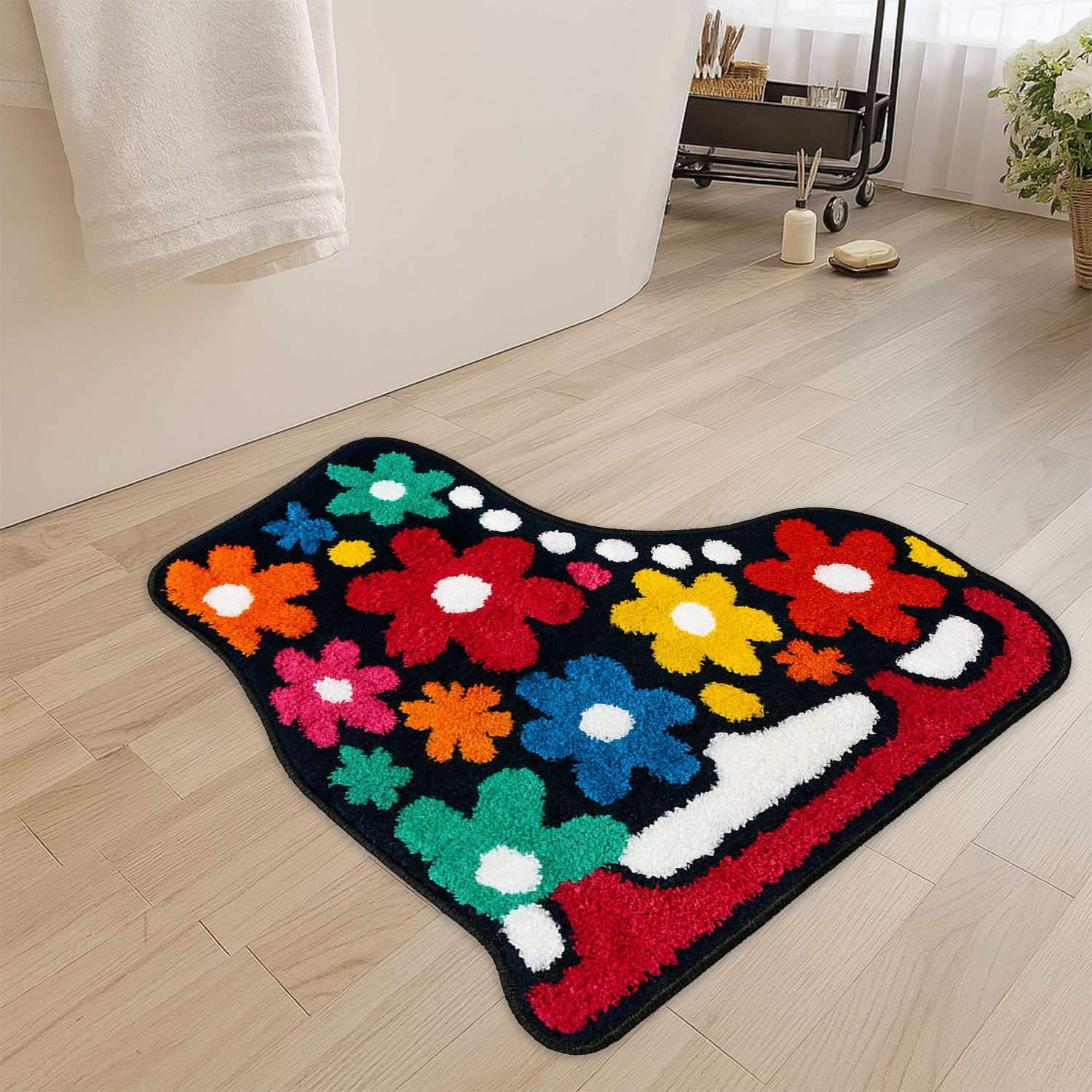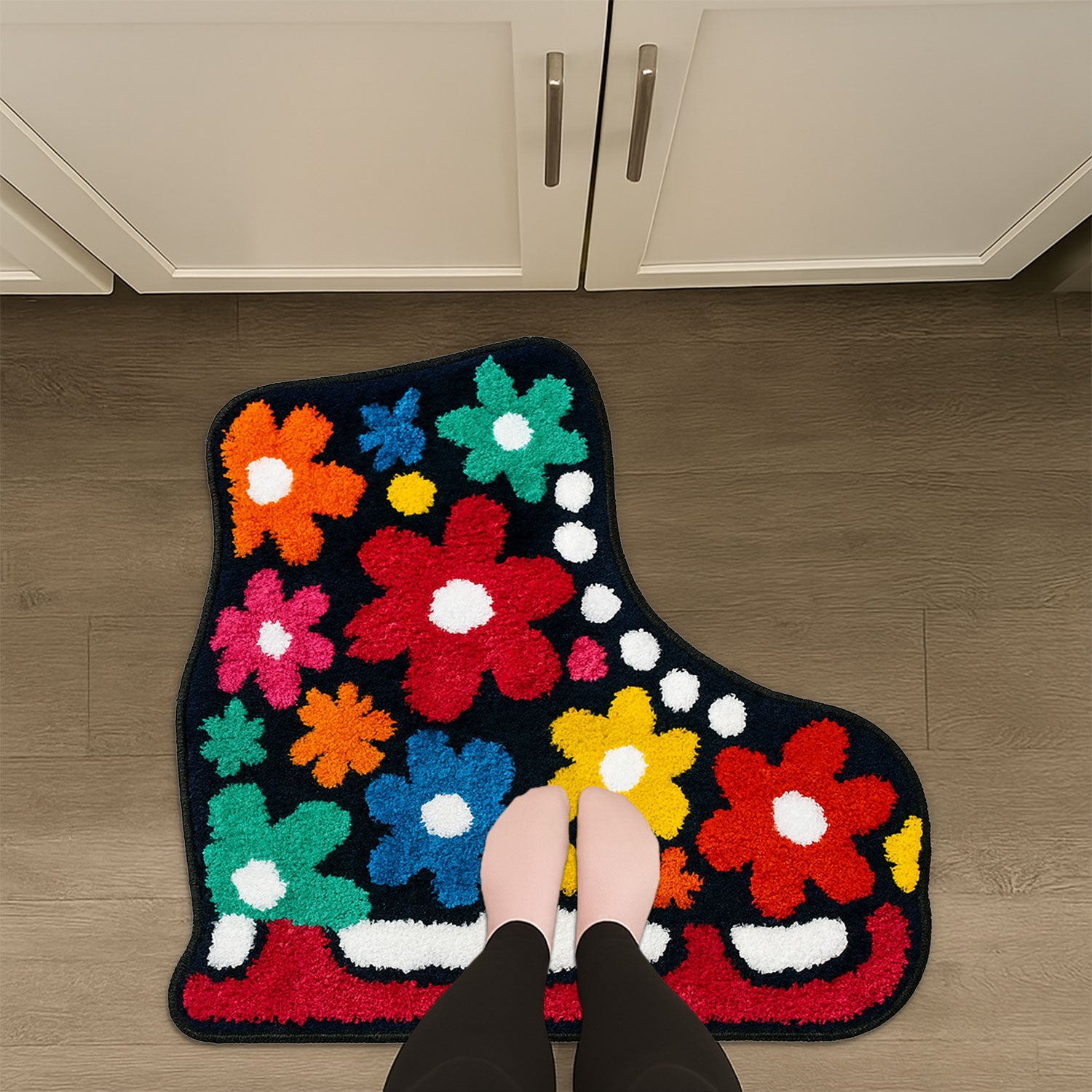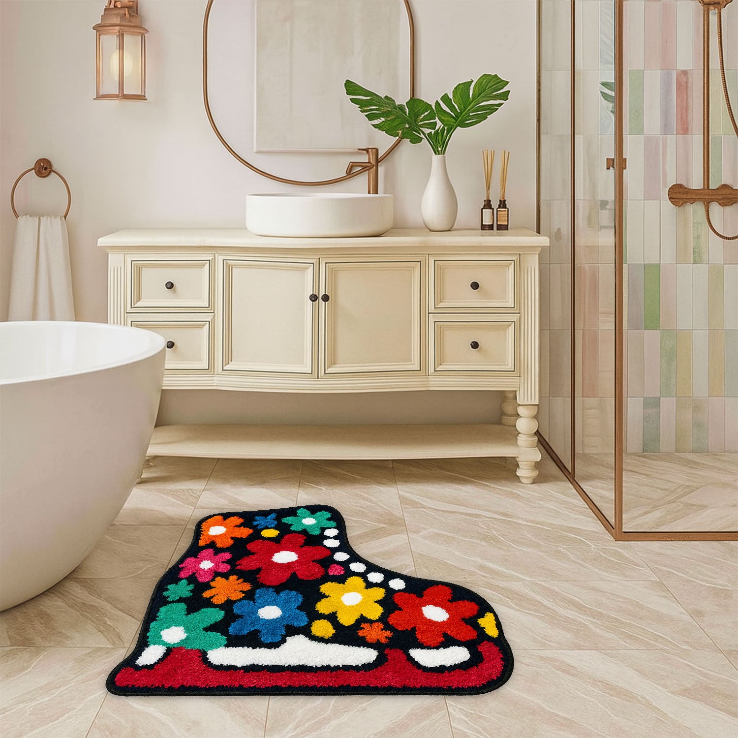 JoySwallow Irregular Flowers Figure Skating Boots Tufted Bathmat, Skating Bathroom Rug, Floral Area Rug, Bedroom Rugs