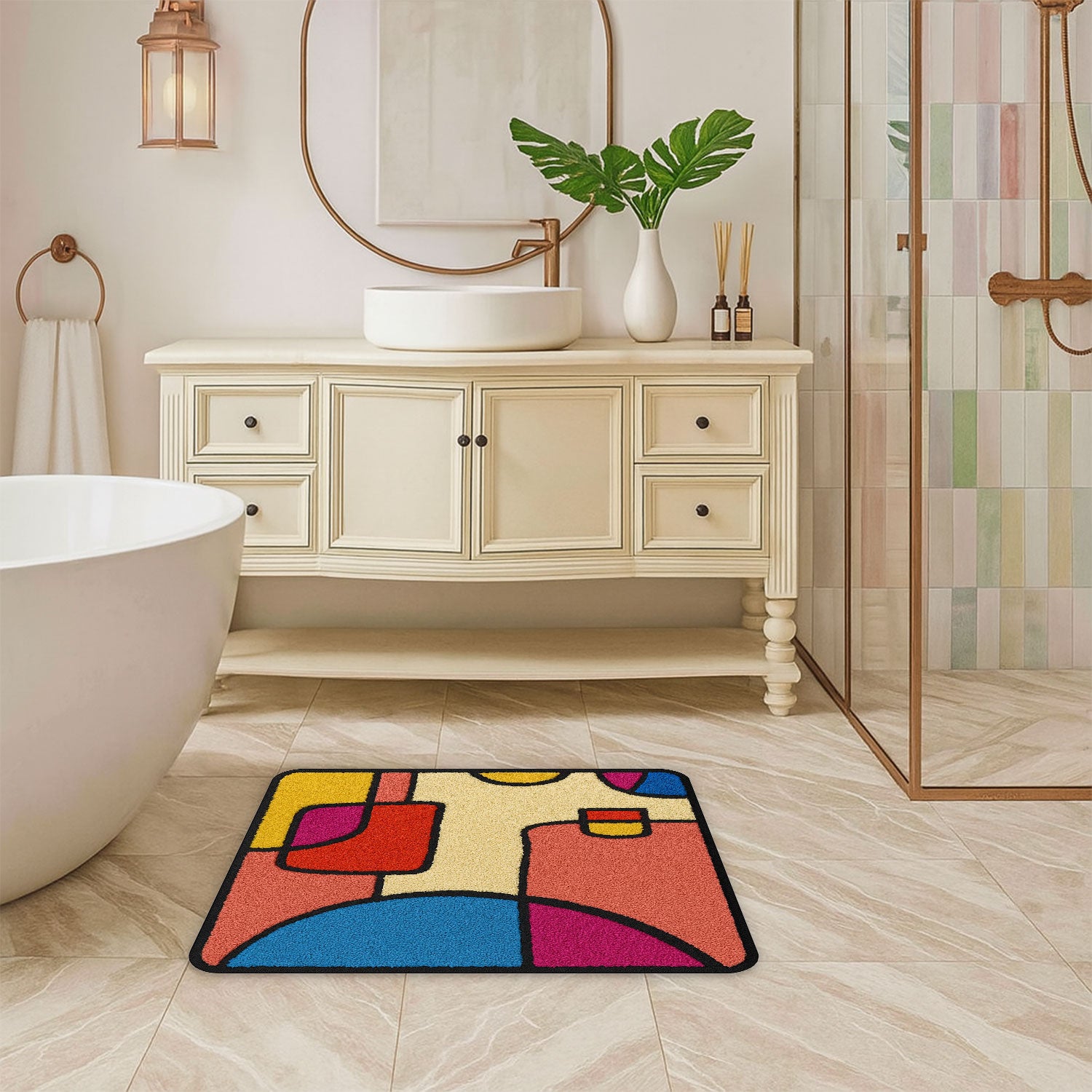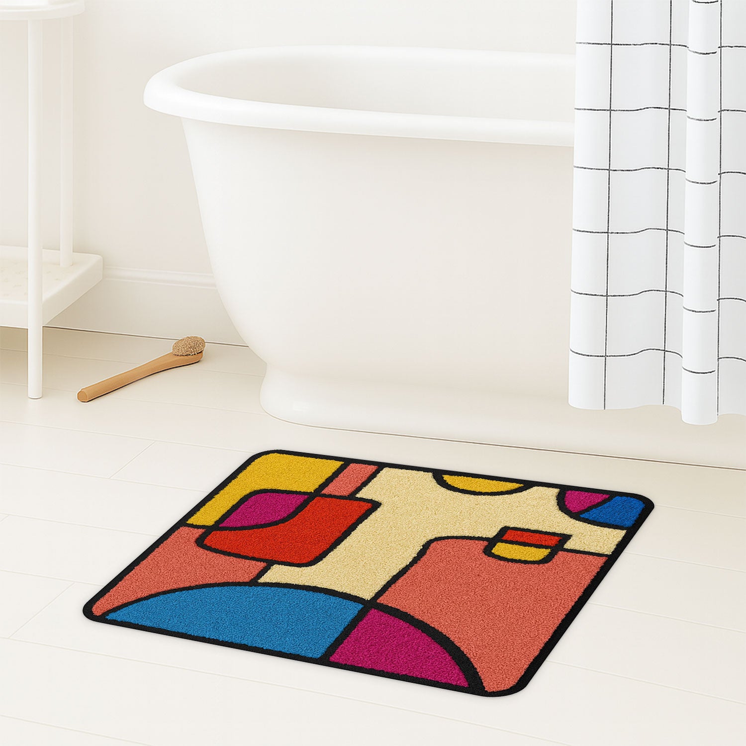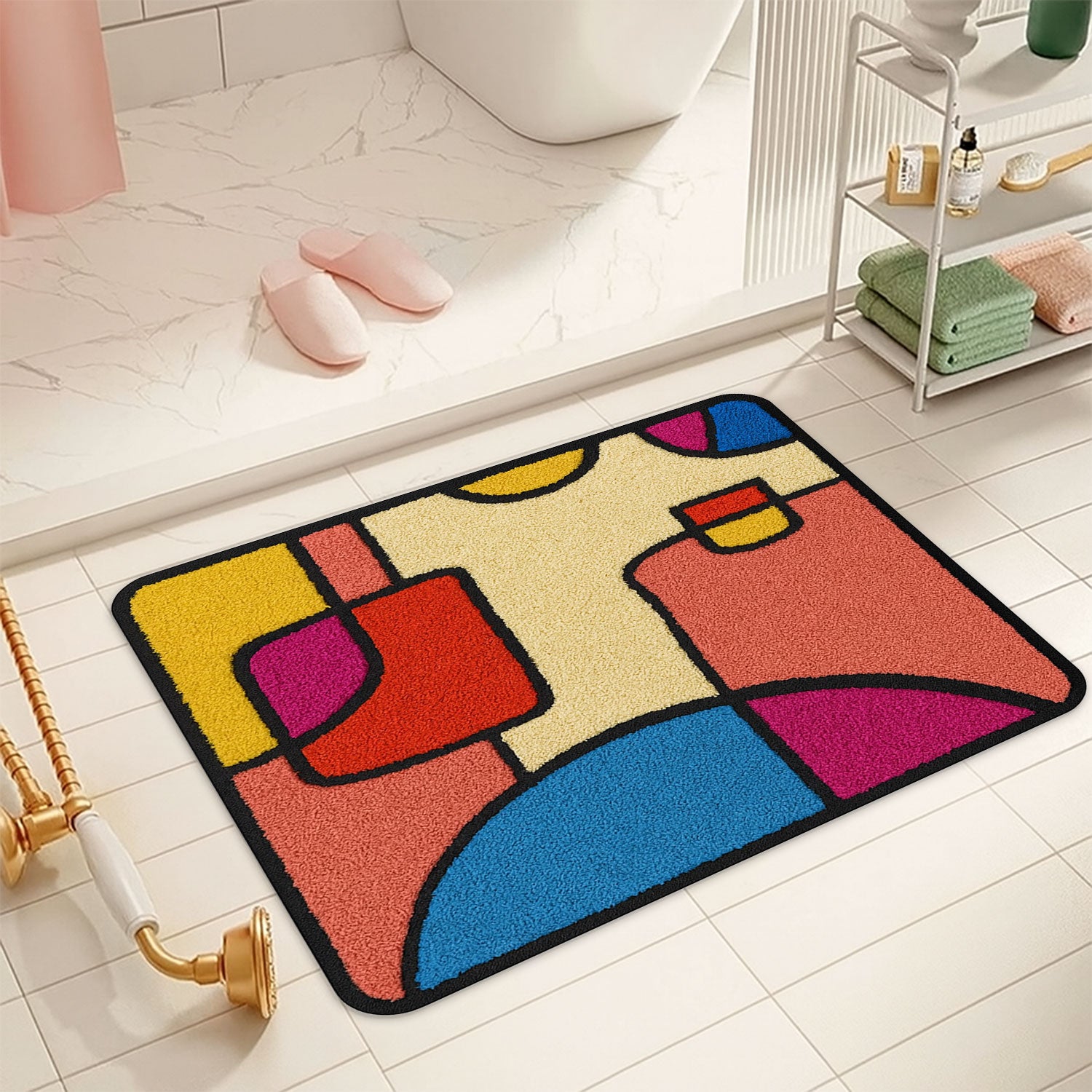 JoySwallow Abstract Colorful Geometrical Blocks Tufted Bathmat, Floral Bathroom Rug, Flower Area Rug, Floral Bedroom Rugs