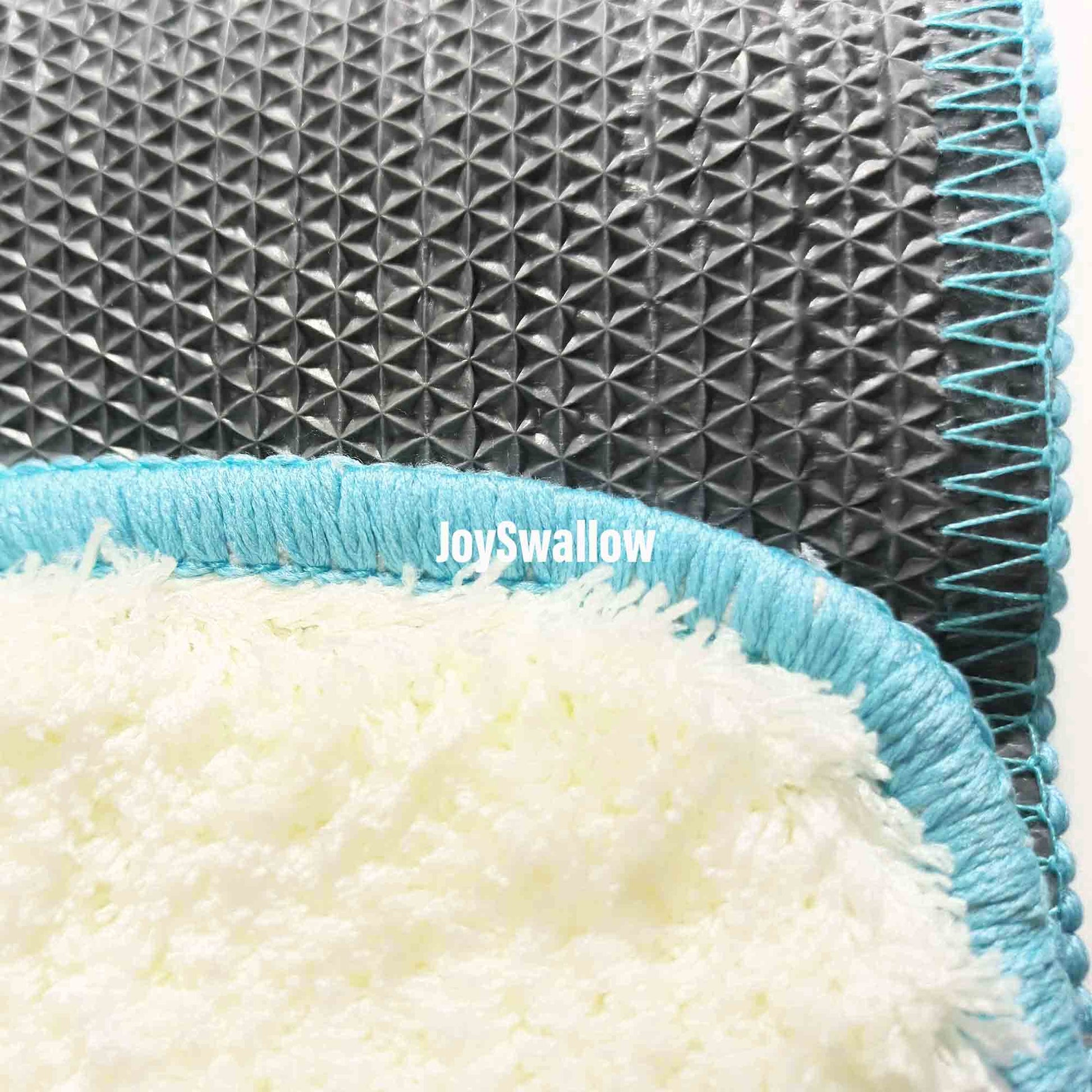The bathmat is made of heavy-density yarn. Thick and fluffy contact surface offers exceptional comfortable feels to help soothe tired feet and is super absorbent that helps save your floors from dripping water while you were stepping out of the bath, shower, or getting ready by the sink.