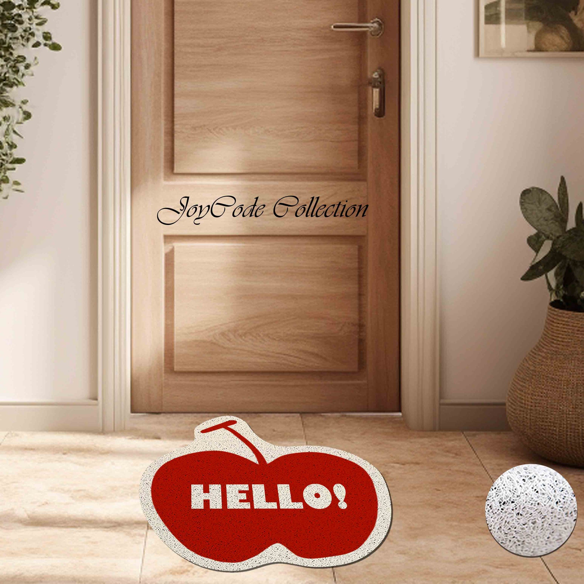 JoySwallow Irregular Red Apple Door Mat, Fluit Doorway Rug, PVC Coil Entrance Mat, Anti-Skid Outdoor Mat, Floral Indoor Mat, Irregular Entryway Rug for Porch Courtyard