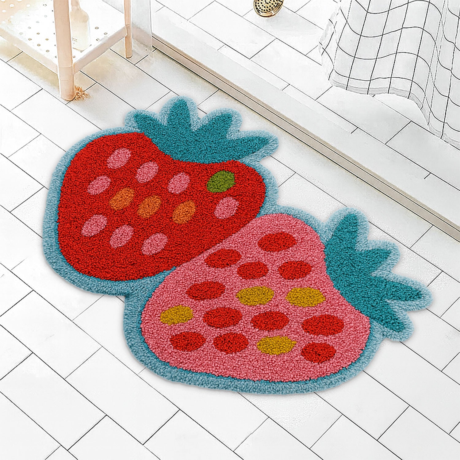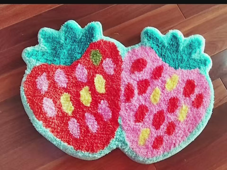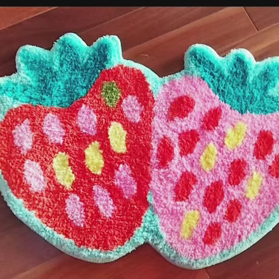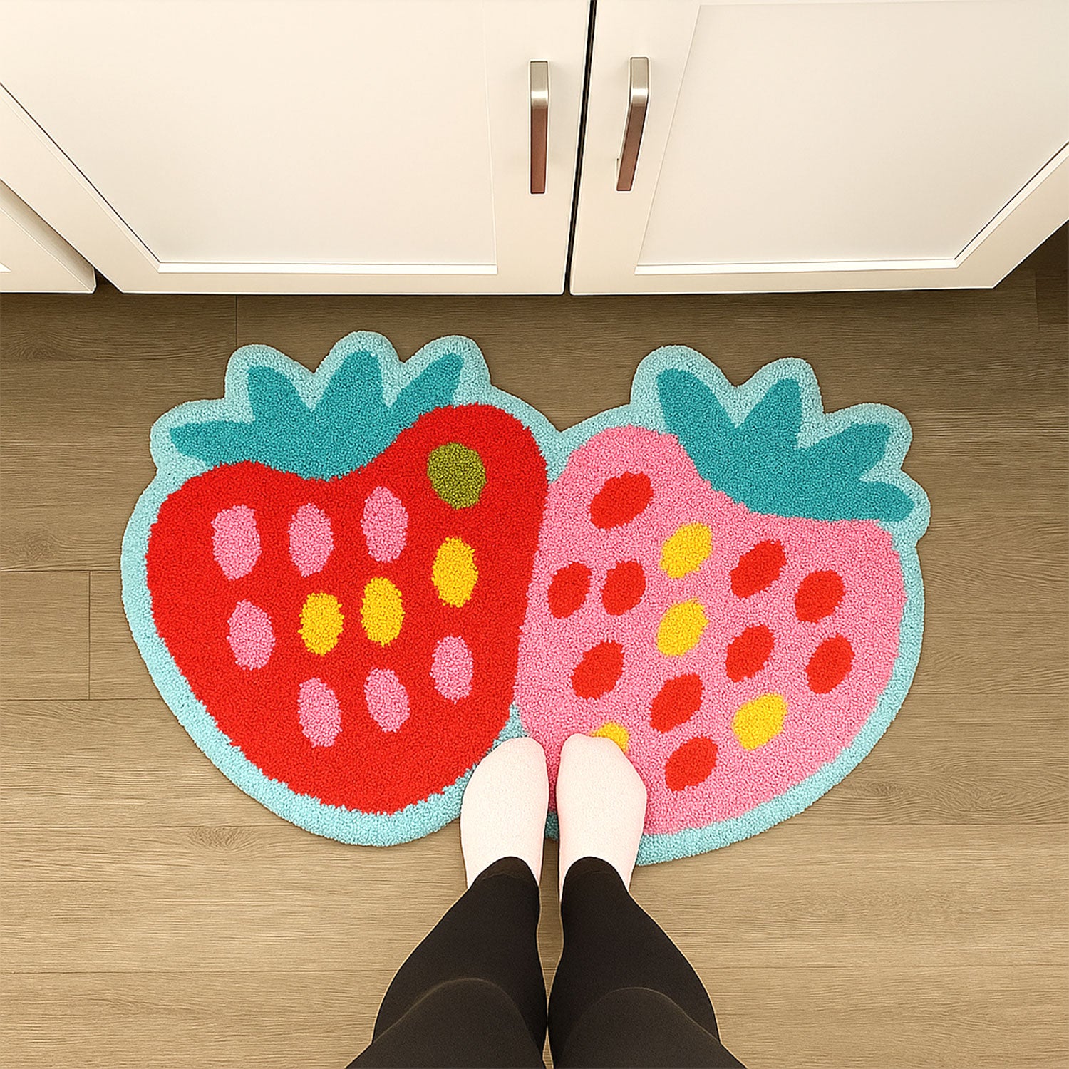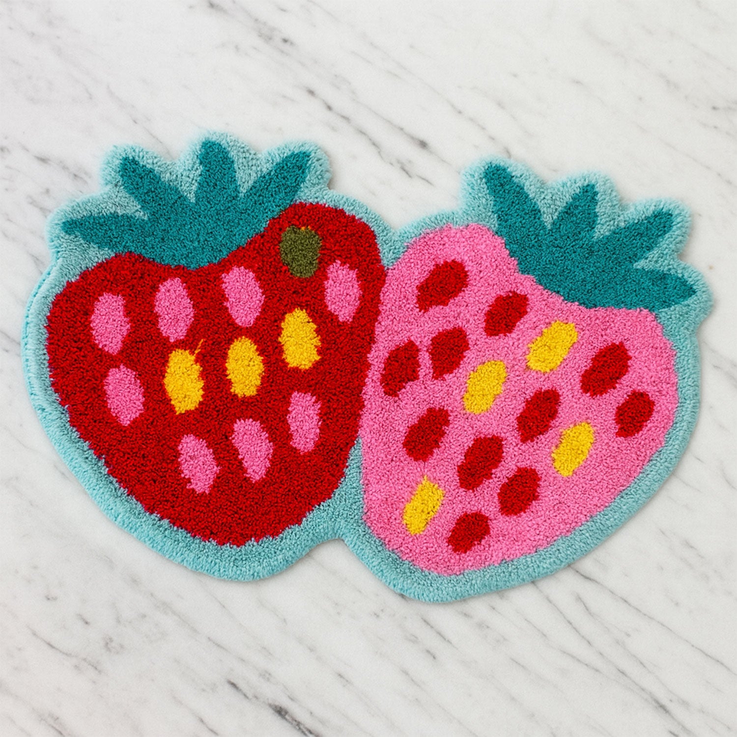 JoySwallow Irregular Strawberry Tufted Bathmat, Strawberry Bathroom Rug, Fruit Area Rug, Strawberry Bedroom Rugs