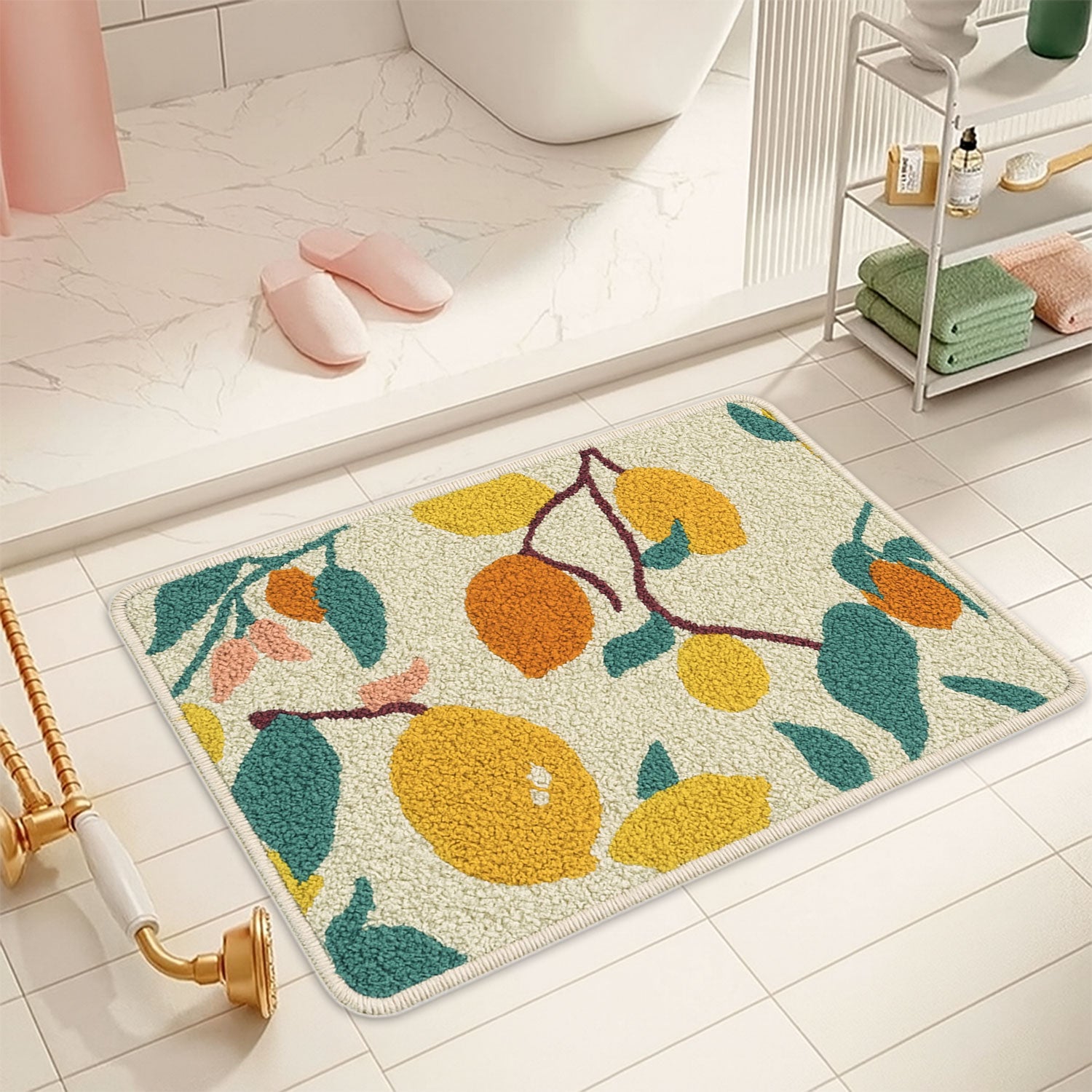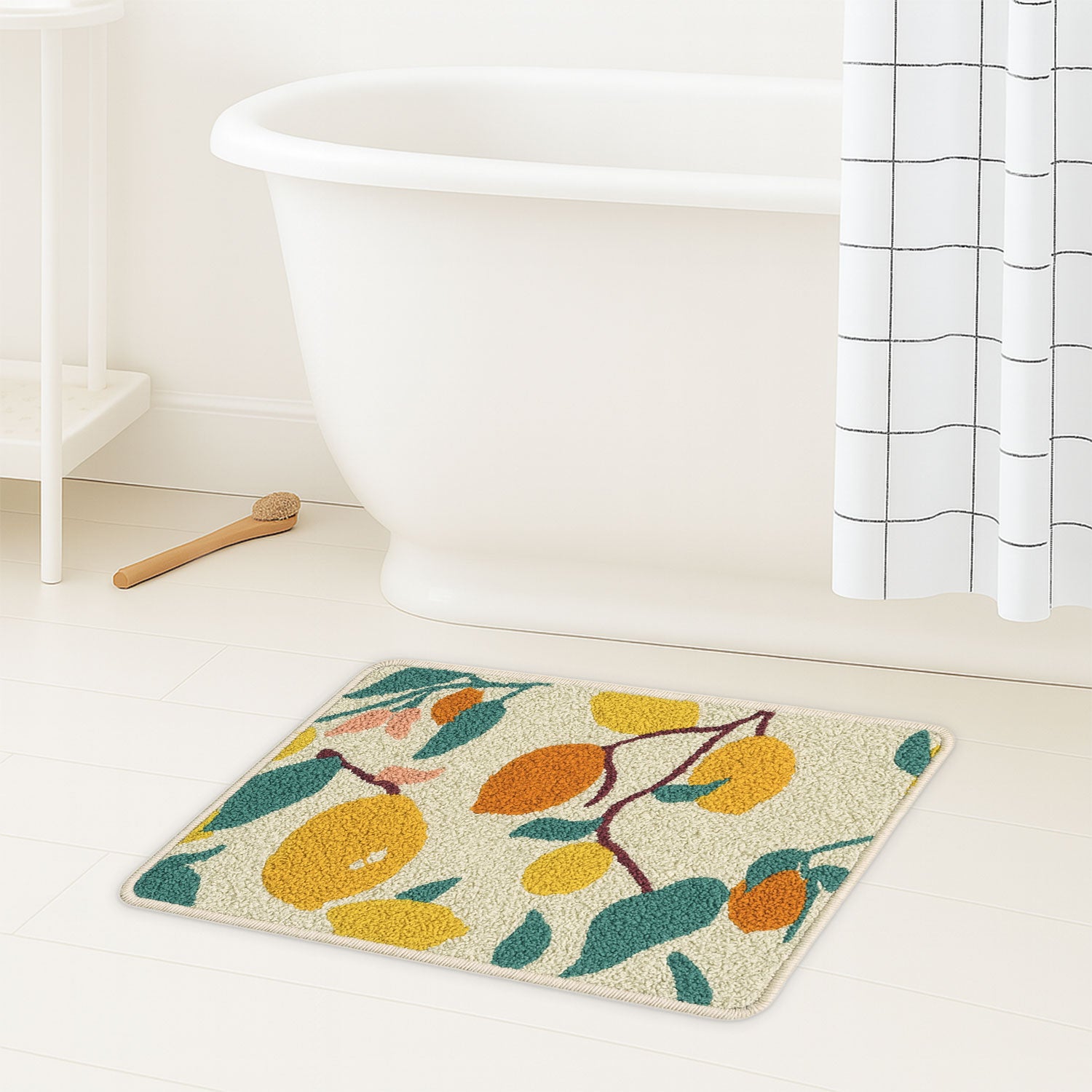JoySwallow Lemon Tree Tufted Bathmat, Floral Bathroom Rug, Flower Area Rug, Floral Bedroom Rugs