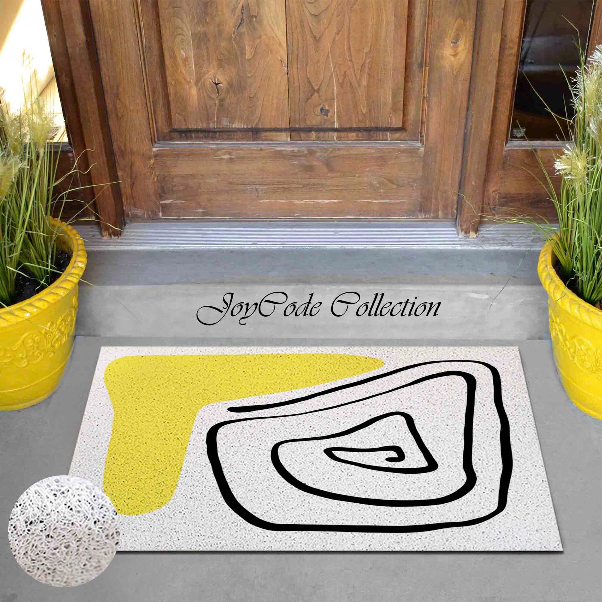 JoySwallow Modern Line and Yellow Block Art PVC Coil Entrance Door Mat, Irregular Blocks Anti-Skid Outdoor Mat, Simple Style Entryway Rug for Porch Courtyard