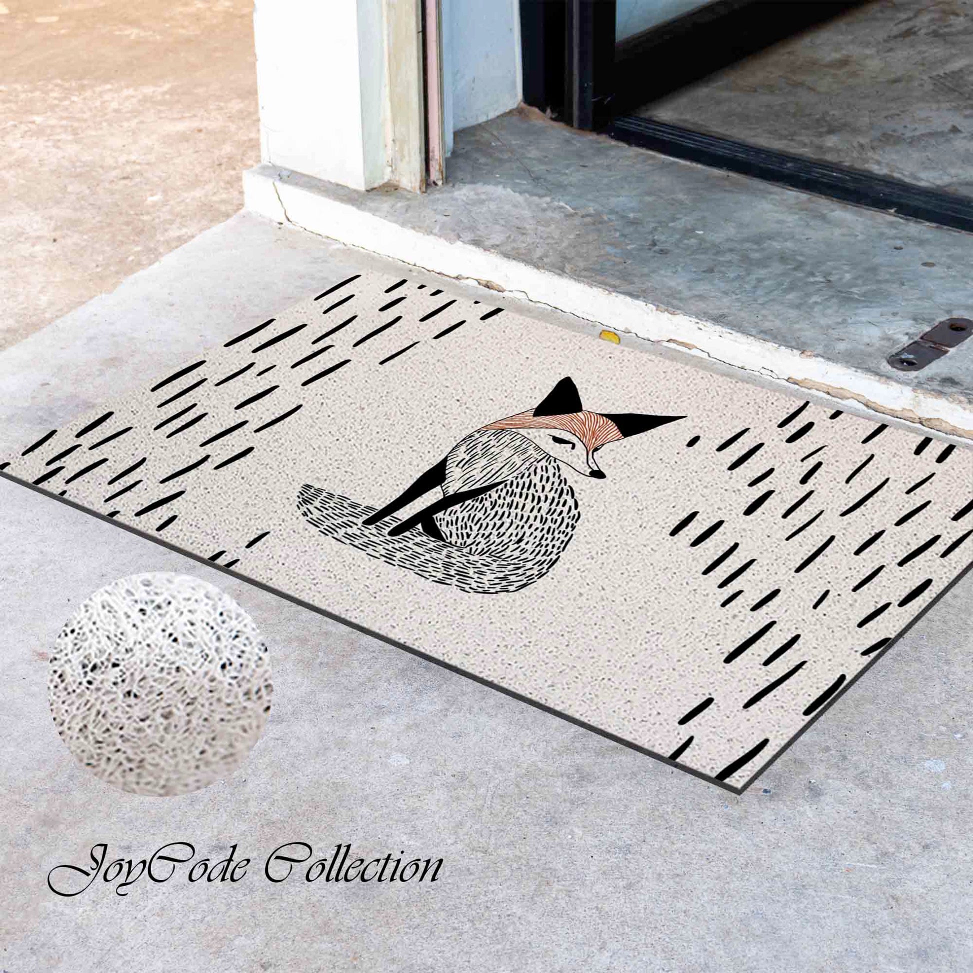 JoySwallow Personalized Door Curtain, Cute Black Fox PVC Coil Entrance Door Mat, Cute Fox Anti-Skid Outdoor Mat, Animal Entryway Rug for Porch Courtyard
