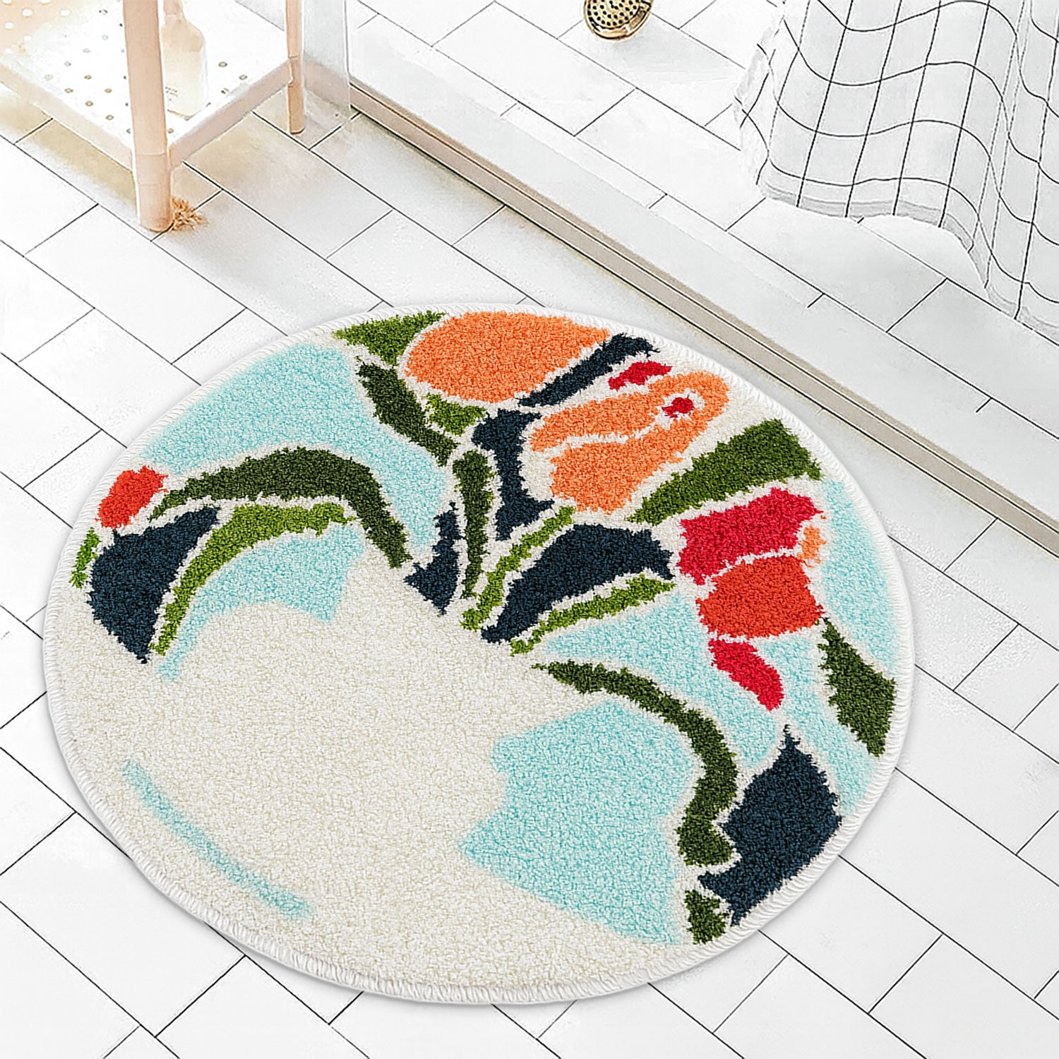 JoySwallow Rose and Vase Round Tufted Bathmat, Lovely Floral Bathroom Rug, Area Rug, Bedroom Rugs, Rug Gift