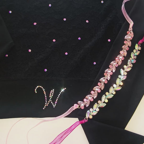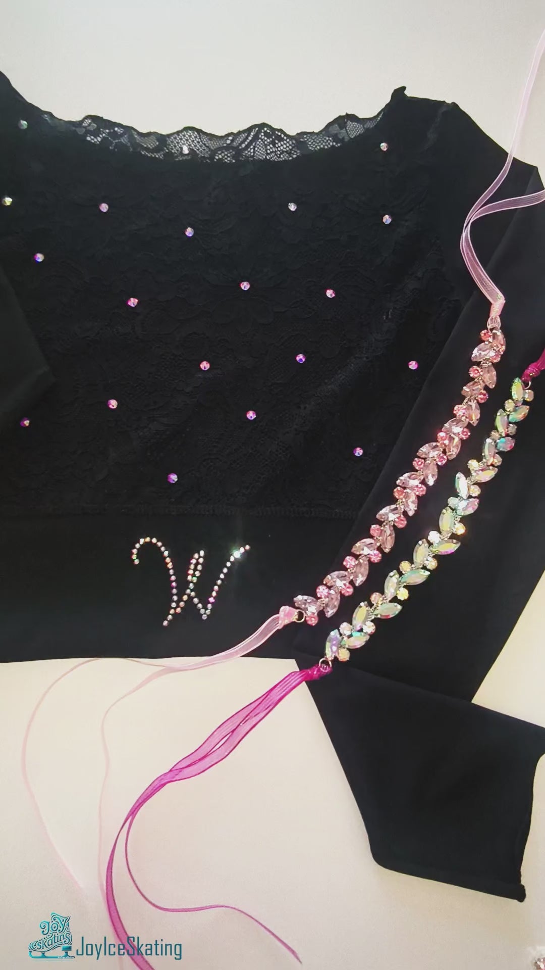 Custom Figure Skating Crop Top – Long Sleeve Lace Back with AB Rhinestones & Personalized Initials